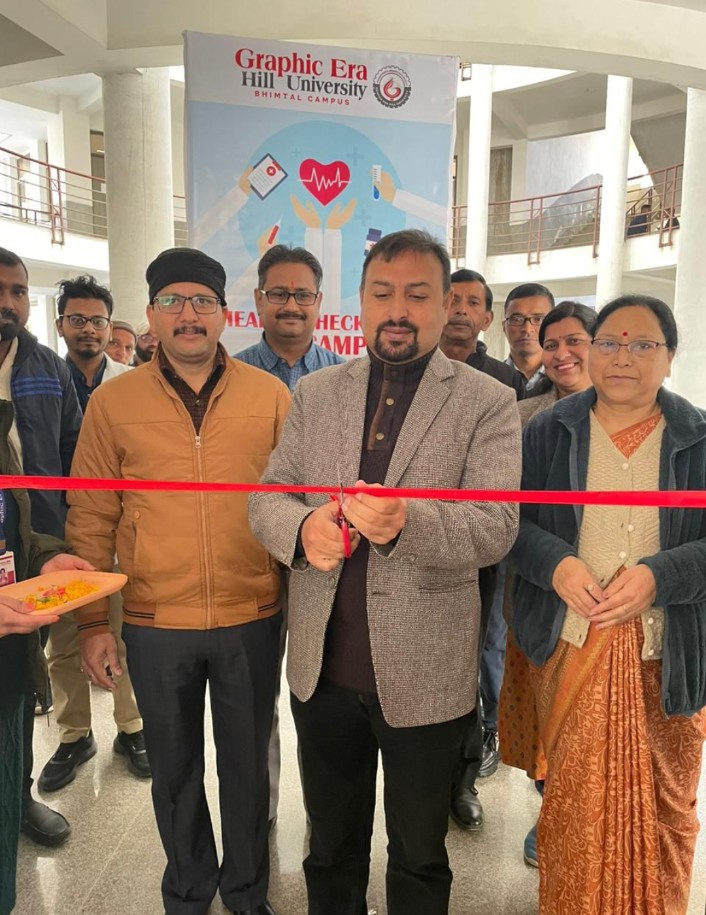 स्कूल ऑफ कम्प्यूटिंग, एवं कॉलेज ऑफ नर्सिंग के संयुक्त प्रयास से ग्राफिक एरा भीमताल परिसर में निशुल्क स्वास्थ्य जाँच शिविर का आयोजन किया गया। शिविर में 100 से अधिक लोगों की जाँच की गयी। जाँच टीम द्वारा सभी का ब्लडप्रेशर एवं हीमोग्लोबिन जाँच कर ब्लड सेंपल लिया गया ।