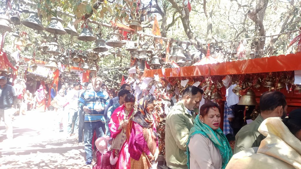 भवाली। नवरात्र के सातवें दिन घोड़ाखाल गोल्ज्यू मंदिर में भक्तों का तांता लगा रहा। सुबह से भक्त शाम तक 5 हजार से अधिक भक्तों ने दर्शन किये। भक्त लाइन में लगकर दर्शनों के लिए खड़े रहे। पंडित गौरव जोशी ने विधि विधान से पूजा अर्चना करायी। हल्द्वानी, नैनीताल, भवाली, भीमताल से आकर भक्तों ने पूजा अर्चना की। मंदिर पुजारी कुँवर नंदन जोशी ने कहा कि नवरात्र में कुछ दिन बारिश होने से भीड़ कम रही लेकिन धूप खिलते ही हजारों भक्त दर्शनों को पहुँचे। उन्होंने कहा कि पूर्णमासी व हनुमान जयंती पर 6 मार्च को अखण्ड रामायण पाठ का आयोजन किया जाएगा। 7 मार्च को परायण कर भव्य भंडारे का आयोजन होगा। उन्होंने भक्तों से अधिक संख्या में आकर प्रसाद ग्रहण करने को कहा।
