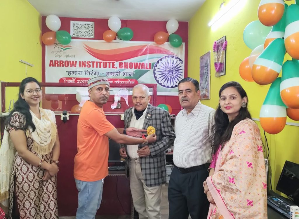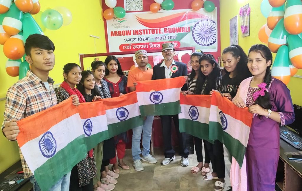 भवाली। हर वर्ष की तरह इस वर्ष भी रामगढ़ रोड़ स्थित एरो इंस्टीट्यूट का 13वा स्थापना दिवस छात्र छात्राओं ने केक काटकर धूम धाम से मनाया। कार्यक्रम में मुख्य अतिथि पूर्व संयुक्त निदेशक ग्रिप कैप्टन वी. एन. सिंह और विशिष्ट अतिथि स्वतंत्रता सेनानी डा. महेश चन्द्र जोशी रहे। समारोह में भारत की स्वतंत्रता के 75 वर्ष पूरे होने पर हमारा तिरंगा हमारी शान कार्यक्रम के भी किया गया। छात्र छत्राओं को स्वतंत्रता दिवस पर घरों पर लगाने के लिए तिरंगों का वितरण किया