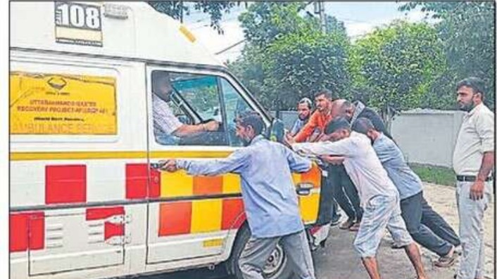 सोमवार सुबह ग्राम भीकमपुरी निवासी सिमरतपाल सिंह (30) पुत्र करनैल सिंह बुलेट बाइक से बाजपुर आ रहा था। रामराज रोड पर सामने से आ रही कार ने बाइक को टक्कर मार दी। हादसे में सिमरत पाल सिंह गंभीर रूप से घायल हो गया। घायल को उपचार के लिए सामुदायिक स्वास्थ्य केंद्र में भर्ती कराया गया। चिकित्सकों ने प्राथमिक उपचार कर घायल को हायर सेंटर रेफर कर दिया। परिजन घायल को लेकर 108 एंबुलेंस में बैठ गए, लेकिन 10 मिनट तक एंबुलेंस स्टार्ट ही नहीं हुई। इस पर परिजनों ने हंगामा किया। इसके बाद उन्होंने एंबुलेंस को धक्का मारा। लेकिन एंबुलेंस स्टार्ट नहीं हुई। इस पर परिजनों ने चालक को नीचे उतारकर गाड़ी में धक्का लगवाया। जिसके बाद एंबुलेंस स्टार्ट हुई और चालक एंबुलेंस को लेकर हायर सेंटर रवाना हो गया। इस दौरान लोगों में प्रशासन के खिलाफ आक्रोश दिखा।