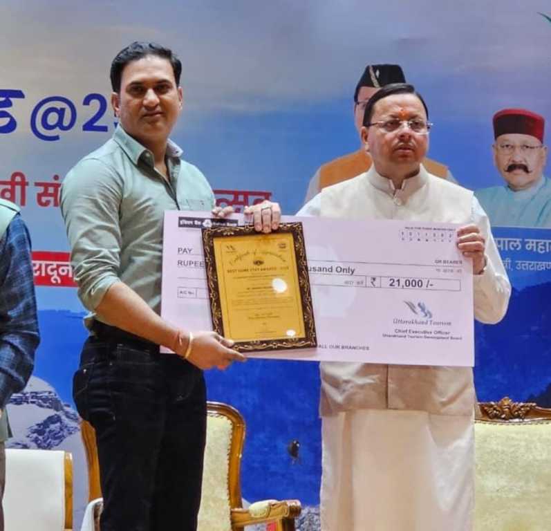 भीमताल/ ग्राम पंचायत जंगलिया गांव में पर्यटन की तमाम संभावनाएं हैं यहां पर वर्ष भर पर्यटकों का आवागम लगा रहता है तथा 85 प्रतिशत भू भाग जंगल से घिरा हुआ है एवं एक पौराणिक पवित्र धाम सिद्ध मंदिर है जो कि चारों तरफ बांज बुरांश काफल तिमूर तथा अन्य दुर्लभ प्रजातियां पाई जाती हैं ग्राम प्रधान राधा कुल्याल ने यह सम्मान पंचायत को मिलने पर खुशी जताई है तथा अरुणोदय के संचालक उमंग वासुदेव को बधाई प्रेषित की है इस सम्मान में प्रतीक चिन्ह तथा 21000 रु की धनराशि दी है राधा कुल्याल ने सभी होम स्टे संचालकों से ग्राम पंचायत की आय बढ़ाने में आर्थिक सहयोग की अपील की है क्षेत्र के सामाजिक कार्यकर्ता प्रेम सिंह कुल्याल ने पर्यटन विभाग से जंगलिया गांव स्थित छोटा कैलाश द्वार का पुनर्निर्माण तथा सैम मंदिर का सौंदर्यीकरण कार्य करने की मांग की है जिला पर्यटन अधिकारी अतुल भंडारी ने बताया कि वह अपने स्तर से उक्त दोनों कार्यों को करने का प्रयास करेंगे