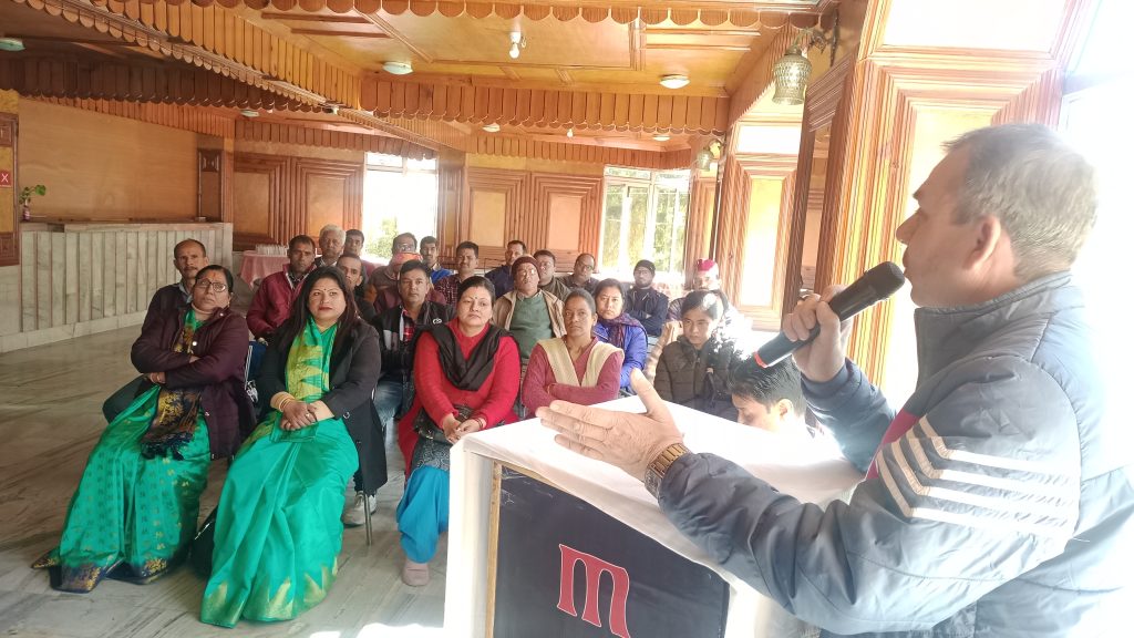 भवाली। नगर के एक होटल में एनसीसी मिनिस्ट्रियल अधिकारी एवं कर्मचारी सर्विस एसोसिएशन उत्तराखंड की एक बैठक का आयोजन किया गया। बैठक में मुख्य अतिथि विधायक सरिता आर्या रही। कुमाऊ मंडल में संगठन के रिक्त चल रहे पद का चुनाव भी किया गया। सर्वसहमति से सभी सदस्यों ने अरुण जोशी को संगठन अध्यक्ष चुना। अधिकारी कर्मचारियों ने विभाग की समस्याओं को बैठक में रखा। विभाग में प्रमोशन, स्थानन्तरण की समस्या पर सवाल उठाए। उन्होंने कहा कि 90 फीसदी कार्य केंद्र सरकार का होता है, लेकिन लाभ नही मिल पाता। वक्ताओं ने कहा कि संगठन कर्मचारियों की समस्या को आगे लाने का काम करता है। नवनियुक्त अध्यक्ष अरुण जोशी ने कहा कि अगर अभी काम करेंगे तो आगे चलकर काम किया जाएगा। संगठन को सशक्त बनाने का आवाहन किया। कर्मचारियों की समस्या को संघ आगे लाकर उनका निस्तारण किया जाएगा। सरकार के स्थाई कर्मचारियों को वितीय आदि पटलों की जिम्मेदारी दी जाए। मुख्य अतिथि विधायक सरिता आर्या ने कहा कि कर्मचारियों अधिकारियों की समस्या के लिए मुख्यमंत्री से वार्ता कर समस्याओं का निस्तारण करने को कहा जायेगा।
