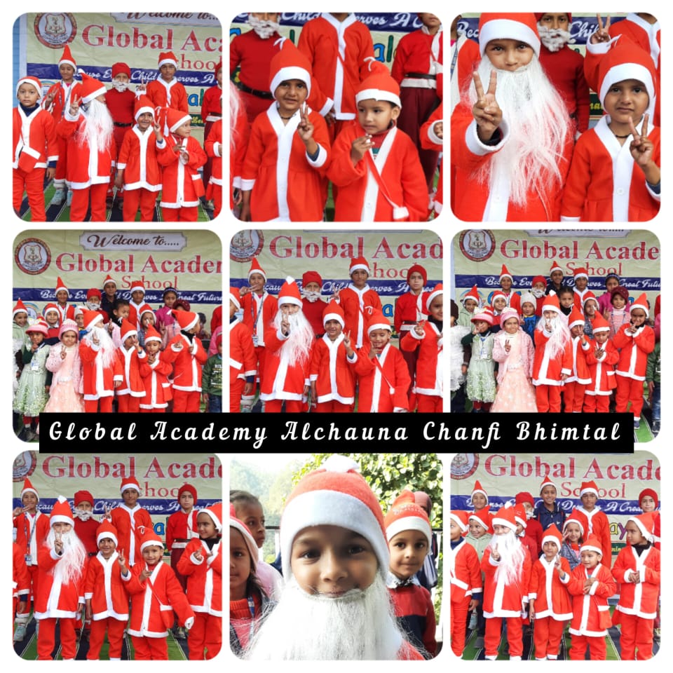 भीमताल के अलचौना चाँफी में उपस्थित ग्लोबल एकेडेमी स्कूल में शनिवार को हर्षोउल्लास के साथ क्रिसमस मनाया गया। जिसमें “जिंगल बेल” गाने में छोटे-छोटे बच्चों ने खूबसूरत प्रस्तुति दी साथ ही विद्यार्थियों ने कई रंगारंग कार्यक्रम प्रस्तुत किये। संता ने सभी विद्यार्थियों को उपहार बांटे। इस अवसर पर प्रबंधक लोकेश तिवारी,सुनीता तिवारी, प्रधानाचार्य विनोद कुमार, राजू फुलारा, नेहा, पूनम, सुनीता आर्या, तनुजा जोशी व काजल बिष्ट आदि शिक्षक मौजूद रहे।