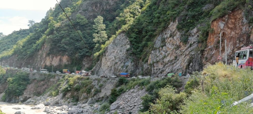 गरमपानी- भवाली अल्मोड़ा राष्ट्रीय राजमार्ग जगह जगह पर बेहद संवेदनशील हो चुका है जिसके हाईवे का पाडली से सुयालबॉडी 20 किलोमीटर तक का सफर बरसात के समय खतरनाक हो जाता है, जिसमे पहाड़ी से आये दिन पहाड़ी से पत्थर गिरते रहते है, वही आज सुबह 6 बजे खैरना बाजार के पास भौर्य बैंड में अचानक थुवा की पहाड़ी से बड़े बड़े बोल्डर पहाड़ी से गिर गए, जिसके चलते पूरी सड़क मलवे से भर गई, गनीमत रही कि उस समय सड़क पर कोई वाहन नही था जिससे एक बड़ा हादसा होने स बच गया, वही मार्ग पर मलवा आने से हाईवे के दिनों तरफ लम्बा जाम लग गया, वही जैसे ही इसकी सूचना खैरना चौकी को मिली तो खैरना चौकी इंचार्ज दिलीप कुमार मौके पर पहुँच गए तथा मौके पर जा कर जे सी बी बुलवाया गया, मलवा अधिक होने के चलते भवाली से आने वाले वाहन को वाया रामगढ तथा क्वारब से आने वाले वाहनो को भी रामगढ के रास्ते भेजा गया, तथा खैरना बाजार में भारी जाम लगा रहा, वही 3 घण्टो की कड़ी मस्कत के बाद मार्ग खोला जा सका, वही वाहनो को एक एक करके छोड़ा गया