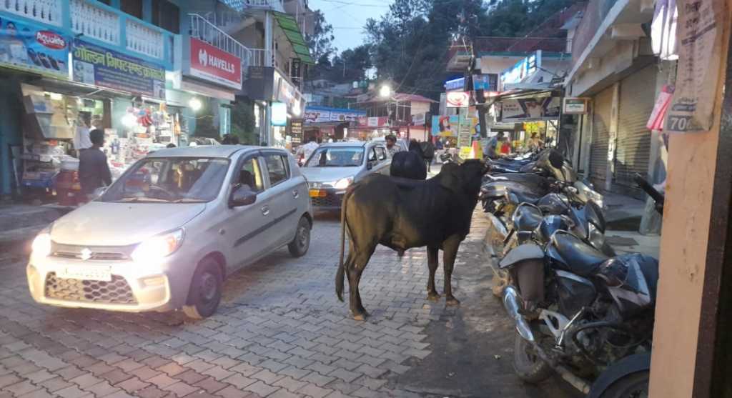 भीमताल, 02 दिसंबर। नगर पालिका क्षेत्र भीमताल में सड़कों पर खुले में घूम रहे आवारा गाय-बैल लोगों के लिए परेशानी का कारण बने हुए हैं। मेहरा गाँव, खुटानी से लेकर नौकुचियाताल तक मुख्य पर्यटन मार्गों पर बड़े सींग वाले बैलों का झुंड अक्सर आपस में भिड़ता दिखाई देता है, जिससे राहगीरों, व्यापारियों और पर्यटकों की सुरक्षा खतरे में पड़ जाती है। भीड़भाड़ वाले बाजार क्षेत्र में इन पशुओं के कारण वाहनों की आवाजाही भी प्रभावित हो रही है।