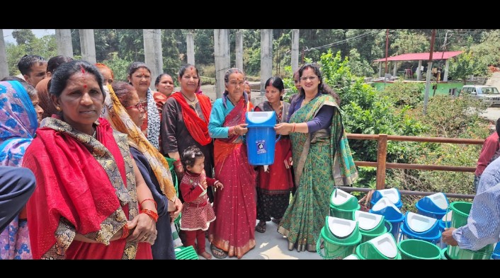 भवाली। गाँवो को साफ स्वच्छ रखने के लिए गाँवो में कूड़ेदान बांटे जा रहे हैं। मंगलवार को डोब ल्वेशाल में ग्राम प्रधान हेमा आर्या के नेतृत्व में ग्रामीणों को कूड़ेदान वितरित किए गए। ग्राम प्रधान हेमा आर्या ने बताया कि घर स्वच्छ रहेगा तो गाँव भी स्वच्छ रहेगा। कूड़ा फैलाने से क्षेत्र में बीमारी फैलने का भी खतरा रहता है। लोग कूड़े को कूड़ेदान में डालकर उसका निस्तारण करे। जिससे साफ सफाई रहे। कहा गाँव में 200 कूड़ेदान वितरित किये गए हैं। नीला, हरे कूड़ेदान दोनो में गीला व सुखा कूड़ा डालकर निस्तारण किया जाए। इस दौरान ग्राम प्रधान हेमा आर्या, क्षेत्र पंचायत सदस्य पुष्पा देवी, दीपा, सामाजिक कार्यकर्ता संजय कुमार आदि रहे।