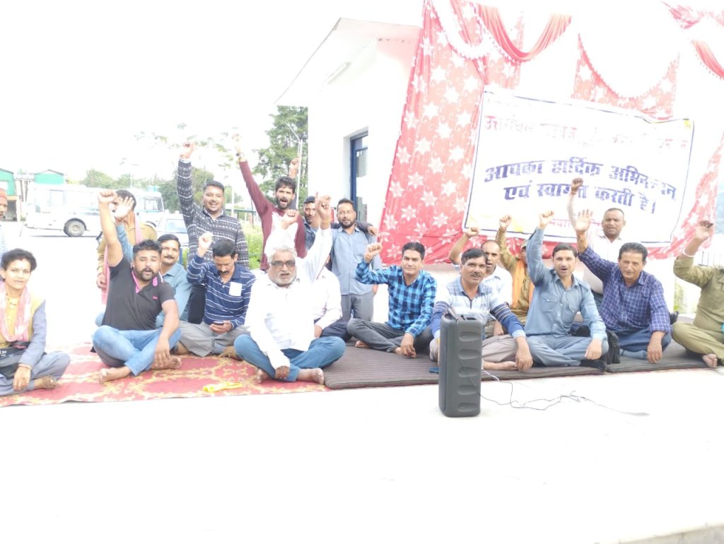 रोडवेज कार्यशाला फरसौली में उत्तराँचल रोडवेज कर्मचारी यूनियन शाखा ने सोमवार को एजेंसी प्रथा के विरोध में प्रदर्शन धरना दिया। कर्मचरियों ने निगम प्रबंधन के खिलाफ नारेबाजी कर सांकेतिक विरोध प्रदर्शन भी किया। यहां कई बिंदुओं पर चर्चा वक्ताओं ने संबोधित किया। कहा कि उत्तराखंड परिवहन निगम में चालक परिचालकों की आपूर्ति हेतु नियुक्ति एजेंसी के साथ किए गए अनुबंध को तत्काल समाप्त किया जाए। एजेंसी की जा रही 233 चालकों एवं 356 परिचालकों के भर्ती पर रोक लगाई जाए। भविष्य में परिवहन निगम में एजेंसी प्रथा की योजना समाप्त हो। परिवहन निगम में कार्यरत संविदा चालक परिचालक को जिन्हें 240 दिन से अधिक हो गए हैं, उन्हें अनुबंध भरने की बाध्यता समाप्त हो। परिवहन निगम में 3500 विशेष श्रेणी, संविदा में कार्यरत चालक-परिचालक-कार्याशाला कर्मचरियों को नियमित किया जाय। उन्होंने कहा कि 23 अगस्त को हल्द्वानी बस स्टेशन में होने वाली क्षेत्रीय बैठक को सफल बनाने की रणनीति बनाई गई है। कहा मांगे नही मानने पर कार्यबहिष्कार व धरना प्रदर्शन किया जाएगा।