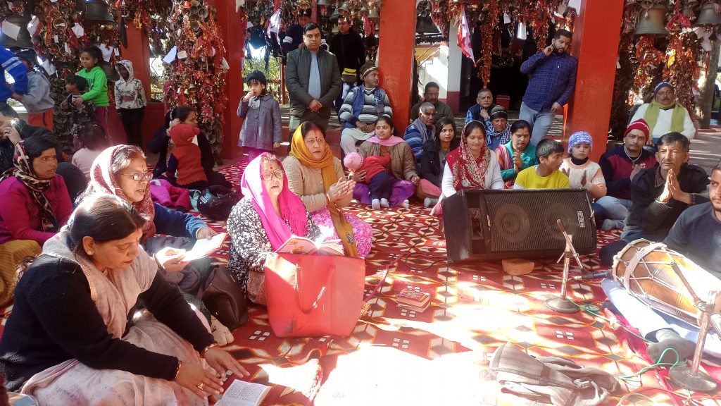 भवाली। घोड़ाखाल गोल्ज्यू मन्दिर में हर वर्ष की तरह इस वर्ष भी माघ मास के भव्य भंडारे का आयोजन किया गया। मंदिर पुजारी कुँवर नंदन जोशी, गौरव जोशी ने विधि विधान से पूजा अर्चना कर गोल्ज्यू का दुग्धाभिषेक किया। महिलाओ ने सुंदर कांड भजन गाए। मंदिर में हजारों भक्त प्रसाद ग्रहण करने पहुँचे। पुजारी कुँवर नंदन जोशी ने कहा कि हर वर्ष गोल्ज्यू को भोग लगाया जाता है। साथ ही माघ मास होने से खिचड़ी का भोग भी लगाया गया। कहा 1 हजार से अधिक भक्त दर्शनों को पहुँचे। भंडारे में भक्तों ने प्रसाद ग्रहण किया।