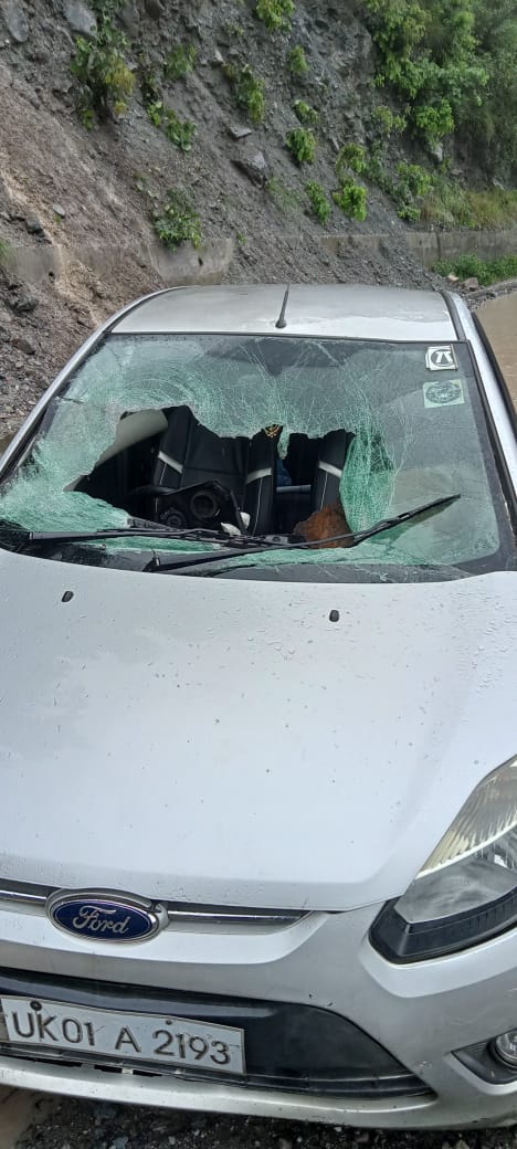गरमपानी- भारी बारिश के बाद से ही जगह जगह मार्गों पर पत्थर तथा मलवा लागतार आ रहा है, जिससे आम जन को काफी परेसानी का सामना करना पड़ रहा है, जिसमे ताजा मामला खैरना रानीखेत मोटर मार्ग के कनवाड़ी की पहाड़ी का है जिसमे आज शाम मलवा आने के चलते एक वहान सड़क के किनारे खड़ा था जिसमे अचानक पहाड़ी से एक विशालकाय पत्थर कार के ऊपर से कार का शीशा तोड़ते हुए अंदर जा गिरा। गनीमत रही की कार के ऊपर पत्थर गिरते समय वाहन चालक वाहन से उतरकर सड़क खुलने का इंतजार कर रहा था। जिससे एक बड़ी अनहोनी होने से बच गयी। घटना के बाद सभी लोगो का डर से बुरा हाल है, जिसके बाद वहान को जे सी बी की मदद से किनारे किया गया । तथा मार्ग को सुचारू किया गया ।
