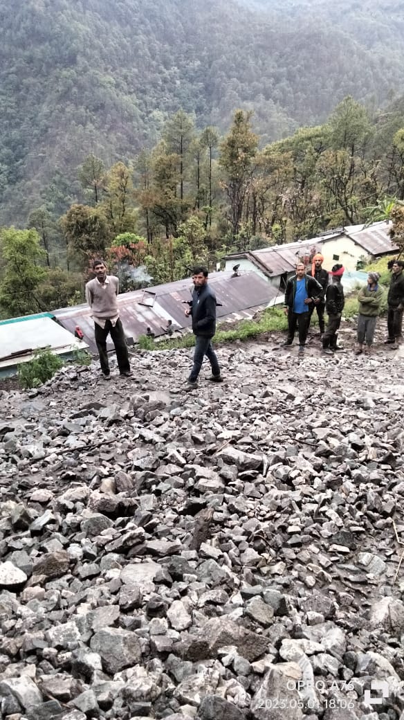 भवाली। दो दिन से लगातार हो रही बारिश से पहाड़ में जनजीवन अस्तव्यस्त हो गया हैं। सड़कों में पानी भरने से लोगों को परेशानी का सामना करना पड़ रहा है। वही धारी ब्लॉक के देवनगर तोक खोल्टा नोवन में घरों में मलवा घुसने से 10 परिवारो को खतरा बन गया। आनन फानन में लोगो ने घरों से बाहर निकलकर अपनी जान बचाई। ग्राम प्रधान बसंती तिवारी ने बताया कि तत्काल तोको के दस परिवारो को दूसरों के घरों में शिफ्ट किया गया। राजस्व विभाग को जानकारी दी गई। अधिकारियों ने मौका मुआयना कर सभी को मदद का आश्वासन दिया है। प्रधान पति नवीन चन्द्र तिवारी ने कहा कि परिवारों को जल्द दूसरी जगह विस्थापित किया जाना चाहिए। अशिकारियो ने मदद का आश्वासन दिया है