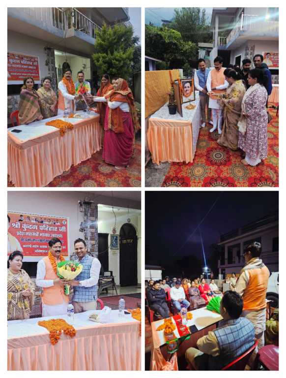 भवाली मंडल में नवनिर्वाचित प्रदेश महामंत्री कुंदन परिहार का स्वागत मण्डल अध्यक्ष हिमांशु बिष्ट के नेतृत्व में मंडल पदाधिकारी एवं कार्यकर्ताओं द्वारा किया गया, भवाली मंडल नके कुंदन परिहार जी को शुभकामनाएं प्रेषित की। मंडल अध्यक्ष हिमांशु बिष्ट द्वारा प्रदेश के शीर्ष नेतृत्व एवं राष्ट्रीय नेतृत्व का आभार व्यक्त किया जिन्होंने जमीनी स्तर से जुड़े हुए नेता को प्रदेश महामंत्री पद पर सुशोभित किया, अत्यंत सरल सहज सौम्य व्यक्तित्व के धनी आदरणीय श्री कुंदन परिहार जी का मार्गदर्शन प्राप्त हुआ, स्वदेशी उत्पादों को उत्पादित करने वाली महिलाओं को आदरणीय कुंदन परिहार जी ने प्रस्कृत किया, इस अवसर पर मेहरा गांव क्षेत्र पंचायत सदस्य मोहित आर्य ने भाजपा की सदस्यता ग्रहण करी , कार्यक्रम का सफल संचालन मंडल महामंत्री वर्षा आर्य द्वारा किया गया, कार्यक्रम में मुख्य रूप से प्रदेश महामंत्री महिला मोर्चा भावना मेहरा , जिला उपाध्यक्ष प्रगति जैन , मंडल अध्यक्ष गरमपानी नीरज बिष्ट ,मंडल महामंत्री अमित पांडे , पूर्व अध्यक्ष संजय वर्मा , व्यापार मंडल अध्यक्ष कंचन शाह जिला कार्यकारी सदस्य शिवांशु जोशी, मंडल उपाध्यक्ष शुभम कुमार , मंडल मंत्री हिमांशु रावत , पूर्व मंडल अध्यक्ष भीमताल कमला आर्य ,बूथ अध्यक्ष मेहरा गांव प्रेम सिंह नेगी अंशुमान डाफोटी, पूर्व जिला उपाध्यक्ष, रमेश सुयाल, जिला मंत्री प्रकाश आर्य , नीतू जोशी , युवा भाजपा नेता आयुष कुमार एवं देवतुल्य कार्यकर्ता उपस्थित रहे।