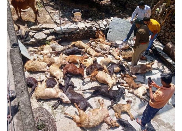 पहाड़ों में गुलदार की दहशत थमने का नाम नहीं लग रही है. आलम यह है कि लोग शाम होते ही घरों में कैद होने को मजबूर हैं. चमोली जिले में पोखरी ब्लाक के सुगी गांव में गुलदार ने एक ही रात में 36 बकरियों को मौत के घाट उतार दिया.सूचना मिलने पर वन विभाग और प्रशासन की टीम मौके पर पहुंची. बताया गया कि गुलदार खिड़की तोडकर बकरियों तक पहुंचा. घटना स्थल का निरीक्षण करने के बाद टीम ने बताया कि रिपोर्ट उच्चाधिकारियों को भेजी जा रही है.