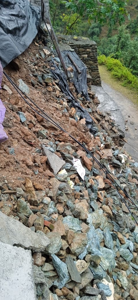 भवाली। बीते तीन दिनों से हो रही बारिश ने लोगो का जीना दूभर कर दिया है। रामगढ़ के झुतिया ग्रामसभा में घर की सुरक्षा दीवार गिर गई। अब घर मे दरारे आने लगी है। जिससे ग्राम प्रधान सुरेशज़ मेर, पटवारी सुरेश सनवाल ने निरीक्षण कर परिवार को दूसरी जगह शिफ्ट कर दिया है। ग्राम प्रधान सुरेश मेर ने बताया कि ललित मोहन पुत्र मोहन राम के मकान की सुरक्षा दीवार गिर गई है। अब मकान को भी खतरा बन गया है। उन्होंने बताया कि मूसलाधार बारिश में भी पटवारी सुरेश सनवाल मोके पर टीम के साथ गाँव का निरीक्षण करते रहे।