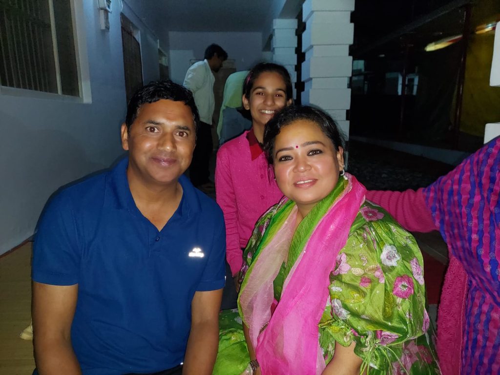 भवाली। मंगलवार देर रात कॉमेडियन भारती सिंह अपने पति हर्ष लिम्बाचिया व पुत्र लक्ष्य सिंह लिम्बाचिया गोला के साथ कैची धाम नीब करौली बाबा के दर्शनों को पहुँची। मंदिर के कपाट बंद होने के बाद भारती सिंह कैची धाम पहुँची। लोगो ने अंधेरे में उन्हें पहचान लिया। जिसके बाद गेट खुलवाकर उन्हें नीब करोली बाबा के दर्शन कराए। उन्होंने मंदिर समिति को बताया कि नीब करोली धाम के बारे में सुना था। बाबा का ऐसा बुलावा था देर रात बाबा के दर्शन किये। कहा बाबा के दर्शन कर मन को शान्ती मिली है। उन्होंने आधा घण्टा मंदिर में रहकर मंदिर की जानकारी ली। बाबा की शिला में भी माथा टेका। देर रात मंदिर में प्रसाद ग्रहण किया। जिसके बाद वो अपने गंतव्य को गई।