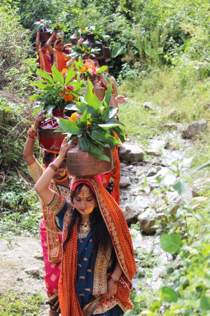 गरमपानी- बेतालघाट ब्लॉक के धनियाकोट के देवी मन्दिर में पहले नवरात्र की शुरुवात से श्रीमद देवी भागवत महापुराण का कार्यक्रम किया जा रहा है जिसमे आज प्रथम दिवस पर ग्राम सभा की महिलाओ द्वारा कुमाउँनी वेशभूषा पहन कर देवी मन्दिर से कोसी नदी तक कलश यात्रा निकाली गई, वही इस श्रीदेवी भागवत महापुराण में कथा वाचक के रूप में पंडित जगदीश आनन्द जोशी द्वारा इस पूजा पाठ तथा विधि विधान के साथ महापुराण का सुभारम्भ किया गया।