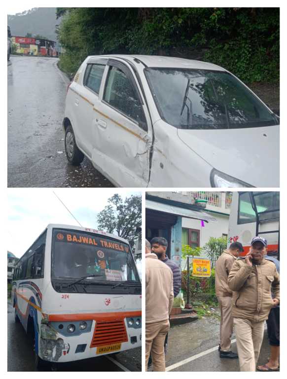 भवाली। मंगलवार को हल्द्वानी से मौना ल्वेशाल जा रही केमू बस ने अनियंत्रित होकर कार को जोरदार टक्कर मार दी। जिससे कार क्षतिग्रस्त होकर नाले में जा गिरी। हल्द्वानी से मौना ल्वेशाल जा रही केमू बस ने भीमताल ऱोड स्थित फरसौली के पास अल्मोड़ा से हल्द्वानी जा रही ऑल्टो कार को जोरदार टक्कर मार दी। जिससे कार नाले में चली गई। जिससे कार का दरवाजा क्षतिग्रस्त हो गया। भीड़ बढ़ती देख बस चालक मौके से फरार हो गया। बस में लोगो ने चालक से कई बार आराम से चलने के लिए कहा लेकिन वह नही माना। प्रत्यक्षदर्शियों ने बताया कि अगर खाई होती तो बड़ा हादसा हो सकता था। बस में 10 से अधिक लोग बैठे थे।