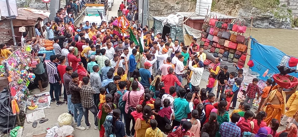 गरमपानी। बेतालघाट में चल रहा तीन दिवसीय मेला रविवार को कृष्ण डोले का नगर भृमण के साथ समापन कर दिया गया। दुर्गापुरी देवी मंदिर से दोपहर 2 बजे ढोल नगाड़ों के साथ नगर भृमण के लिए डोला निकाला गया। आयोजन संत श्री रविदास महाराज के निर्देशन में ग्रामीणों ने डोले को भृमण कराया। नंद के घर आनंद भयो जय कन्हिया लाल की, जय कन्हिया लाल की हाथी घोड़ा पाल की भजनों से दिन भर नगर गूँजयमान रहा। आस पास के 50 से अधिक गाँवो के 2 हजार से अधिक ग्रामीणों ने भगवान कृष्ण के डोले में दर्शन किये। युवा डीजे बजाकर हरि भजनों में नाचते रहे। कृष्ण राधा ने नृत्य कर सबका मन मोहा। देर शाम कोसी नदी के तट पर विशरजन किया गया। छोटे बच्चे कृष्ण राधा के वेश में नगर में घूमते रहे। लोग घरों से फूल बरसाकर डोले का स्वागत किया। हरि भजनों से ग्रामीण झूमते रहे।
