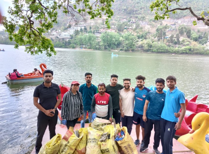 युवाओं ने झील सफाई कर दिया जागरूकता का संदेश आज शुक्रवार भीमताल झील किनारे फैले कूड़ा-करकट,गंदगी, पन्निया, प्लास्टिक को उठाने का कार्य दर्जनों युवाओं ने हिमालयन जन सेवा फाउंडेशन के तत्वावधान में सफाई एवं कूड़े का निस्तारण कर पर्यटन झील को स्वच्छ एवं निर्मल बनाने का जागरूकता संदेश दिया गया, टीम में सभी युवाओं ने बोट स्टेंड, झील के किनारे समीप 2 घंटा झील में आए कूड़े को उठाकर स्वच्छता का कार्यक्रम चलाया और डेढ दर्जन कट्टा कूड़ा-प्लास्टिक झील से बाहर निकाला, साथ ही ग्राफिक ग्रेरा कॉलेज ईको क्लब, होप संस्था टीम एवं तमाम युवको ने झील के मल्लिताल छोर पर सफाई का कार्यक्रम सम्भाला, झील प्रेमी सामाजिक कार्यकर्ता पूरन चंद्र ब्रजवासी ने जिला प्रशासन और झील से जुड़े विभागों से झील की सफाई के लिए विशेष अनुरोध किया है साथ ही नगर की जनता एवं झील से जुड़े व्यवसाइयों से स्वच्छता बनाए रखने कि अपील की है , फाउंडेशन अध्यक्षा डॉ फरहा खान ने बताया की आगे भी सफाई अभियान समय-समय पर जागरूकता के लिए चलाया जाएगा। आज के स्वच्छता अभियान कार्यक्रम में हिमालयन जन सेवा फाउंडेशन अध्यक्षा डॉ फरहा खान , झील प्रेमी सामाजिक कार्यकर्ता पूरन चंद्र बृजवासी, सीमांत श्रीवास्तव, पूनम शर्मा, भास्कर जोशी, अक्षय कुमार, गोकुल सिंह, कमलेश कन्याल , दिव्यांशु, स्कूल छात्र एंड अन्य वॉलिंटियर्स ने प्रतिभाग किया।