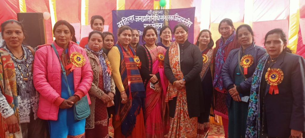 शुक्रवार को महिला विरांगना संगठन द्वारा जिला स्तरीय सम्मेलन सम्मेलन द हंगर प्रोजेक्ट भीमताल रोड़ स्थित एक होटल में किया गया। विरांगना संगठन के कार्यों, उपलब्धियों व चुनौतियों पर मुख्य चर्चा हुई की गई। वक्ताओं ने कहा कि महिला जनप्रतिनिधियों ने विकास कार्यों के साथ समाज में अपनी पहचान बनायी है। इसके साथ ही किशोरी स्वास्थ्य, स्वच्छता , महिला हिंसा, आजीविका मिशन , सम्मान जनक मानदेय, लिंग समानता, आदि पर मुख्य चर्चा की गई। जिला पंचायत अध्यक्ष बेला तोलिया ने संबोधित कर कहा कि आज के दौर में महिलाएं आगे आकर काम कर रही है, महिला उत्थान के लिए आगे आकर काम किया जाएगा। वार्ड मेम्बर ग्राम प्रधान को अपने वार्डो की समस्याएं बताए, जिससे समय पर उनका निस्तारण किया जा सके।