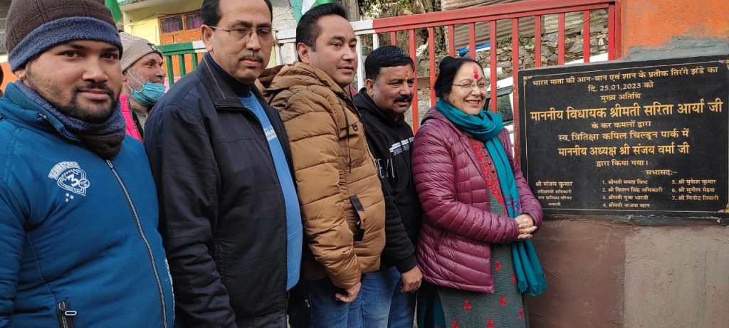 नगर में विधायक सरिता आर्य द्वारा त्रितीक्षा कपिल चिल्ड्रन पार्क का उद्घाटन किया गया। सर्वप्रथम सभी ने स्व तृतिष्का कपिल के चित्र पर माल्यार्पण किया। जिसके बाद उनको याद किया गया। साथ ही पार्क में राष्ट्रीय ध्वज भी स्थापित किया गया। इस दौरान देश भक्ति गीतों व संगीत के कार्यक्रम भी प्रस्तुत किए गए।