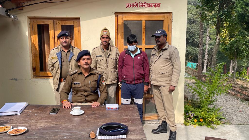 सीओ भवाली नितिन लोहनी ने प्रेस वार्ता कर जानकारी दी कि सरस्वती देवी पत्नी हरक सिंह नयाल उम्र 80 निवासी सतबुंगा घर के रसोई में काम कर रही थी। जब घर में कोई अन्य मौजूद नही था। तभी लगभग 12 बजे अज्ञात व्यक्ति घर में घुसा। जिसने सरस्वती देवी के मुंह में कम्बल डालकर मारपीट करने के साथ गले से लगभग 2 तोले का सोने का गलोबन्द छीनकर भाग गया। जिसपर बजुर्ग के भतीजे बिरेन्द्र सिंह ने मुक्तेश्वर थाने में तहरीर सौपी। और पुलिस ने अज्ञात के खिलाफ धारा 394/452 के तहत मुकदमा पंजीकृत किया। सीनियर सिटीजन के साथ हुए इस जघन्य वारदात को लेकर क्षेत्र में काफी आक्रोश व्याप्त था। घटना की गम्भीरता को देखते हुए वरिष्ठ पुलिस अधीक्षक नैनीताल ने त्वरित अनावरण हेतु आवश्यक दिशा निर्देश दिये और पुलिस अधीक्षक अपराध- यातायात डॉजगदीश चन्द्र व क्षेत्राधिकारी भवाली नितिन लोहनी के मार्ग दर्शन में मुक्तेश्वर पुलिस टीम द्वारा लगातार अज्ञात की तलाश शुरू की गई। संदिग्ध व्यक्तियों से पूछताछ व सीसीटीवी फुटेज आदि के आधार पर गुरुवार को पुलिस ने टीकम सिंह गौड़ उम्र 32 पुत्र स्व मोहन सिंह गौड़ निवासी सतबुंगा हाल निवासी हल्द्वानी को सतबुंगा के पास से लूटे हुए सामान गलोबन्द के साथ गिरफ्तार कर लिया। वही मुक्तेश्वर थाना अध्यक्ष द्वारा पूछताछ में उसने अपना जुर्म कबूल लिया। पुलिस की त्वरित कार्यवाही पर एसएसपी नैनीताल द्वारा पुलिस टीम के उत्साहवर्धन हेतु 5000 रुपये की इनाम की घोषणा की है। इस दौरान पुलिस टीम में थानाध्यक्ष महेश जोशी, त्रिलोक नाथ, विपिन शर्मा मौजूद रहे।