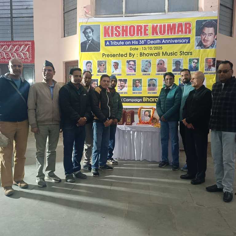 भवाली। नगर में भवाली म्यूजिक स्टार की तरफ से सोमवार देर शाम किशोर कुमार की 38 वी पुण्यतिथि पर संगीत संध्या का आयोजन किया गया। सभी संगीत प्रेमियों ने किशोर कुमार की फ़ोटो फूल चढ़ाकर श्रद्धांजलि अर्पित की। सभी ने किशोर कुमार के गाने गाकर उनको याद किया। इस दौरान आलोक चौधरी, ललित टम्टा, राजेन्द्र प्रसाद कपिल, सनित जोशी, मोहित कपकोटी, हरीश आर्या, ललित पाण्डे, हरिशंकर कांडपाल, अतुल कुमार, प्रशांत आर्या, संजय कुमार, विजय कुमार, जगमोहन, रमित जोशी, दिनेश जोशी, सन्नी आदि रहे।