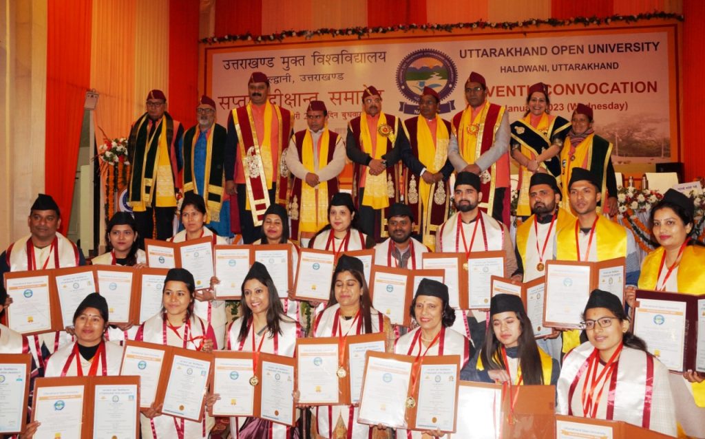 मुख्यमंत्री पुष्कर सिंह धामी ने उत्तराखण्ड मुक्त विश्वविद्यालय के सप्तम दीक्षांत समारोह में वर्चुअल रूप से प्रतिभाग करते हुए उपाधि प्राप्त करने वाले सभी विद्यार्थियों को बधाई दी। उन्होंने कहा कि उच्च शिक्षा के माध्यम से उच्च कोटि का व्यक्तित्व निर्माण करने में उत्तराखण्ड विश्वविद्यालय महत्वपूर्ण भूमिका निभा रहा है। विश्वविद्यालय द्वारा विद्यार्थियों की अन्तर्निहित क्षमता एवं उनके व्यक्तित्व विकास के लिए सराहनीय कार्य किया जा रहा है। विश्वविद्यालय को अपने पहले ही प्रयास में नैक द्वारा मूल्यांकन में बी ग्रेड प्राप्त हुआ वहीं दिव्यांगों के क्षेत्र में विशिष्ट कार्यों के लिये राष्ट्रपति पुरस्कार से भी सम्मानित किया गया। यह उपलब्धियां विश्वविद्यालय के कुशल नेतृत्व और शैक्षणिक एवं गैर शैक्षणिक कार्मिकों के अथक परिश्रम का प्रतिफल है। उन्होंने आशा व्यक्त की कि जो विद्यार्थी आज यहा से दीक्षा ले रहे हैं, अब वे जिस भी कार्य क्षेत्र में जायेंगे उस क्षेत्र में अपनी प्रतिभाओं से समाज को नेतृत्व प्रदान करेंगे।