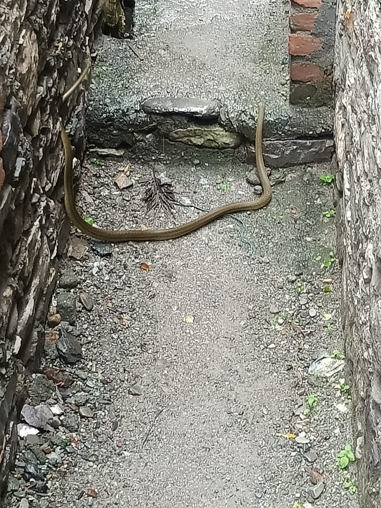 गरमपानी- पिछले 2 दिनों से हो रही लागतार बारिश के चलते छोटे बड़े कीड़े तथा अन्य जीव बाहर दिखाई देना आम बात है लेकिन आज सुबह भवाली अल्मोड़ा राष्ट्रीय राजमार्ग के मध्य गरमपानी खैरना के तहसील के पास विपिन राम अपने घर के अन्दर सोया हुआ था । जिसमे मकान के अन्दर अचानक एक 1 मीटर से अधिक लम्बा सांप घर के अंदर आ गया, देखते ही देखते वह साँप घर की दीवार चढ़ कर घर के अन्दर बनी रेलिंग तक पहुँच गया। जैसे ही मकान स्वामी विपिन राम की नींद खुली तो अचानक उसकी नजर नजर साँप पर पड़ी, तो विपिन राम डर कर अपने परिवार के साथ बाहर आ गया तथा जोर जोर से चिल्लाने लगा, विपिन की द्वारा शोर-शराबा करने की आवाज सुन आसपास के लोगों द्वारा मौके पर पहुंचा गया तथा देखा कि उसके घर के अंदर 1 मीटर से लंबा सांप बैठा हुआ है जिससे सभी का डर की वजह से विपिन के घर से बाहर आ गए तथा आनन-फानन में आसपास के लोगों द्वारा इसकी सूचना वन विभाग को दी गई। जिसके बाद वन विभाग के कर्मचारी गोपाल सिंह नेगी द्वारा मौके पर पहुँचे तथा 2 घण्टो की कड़ी मस्कत के बाद साथ किसी तरह साँप को घर से बाहर निकाला कर सुरक्षित नदी की तरफ छोड़ दिया गया।