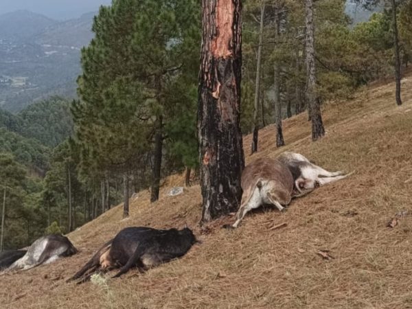 बज्रपात ने बरपाया जानवरों पर कहर बज्रपात के कारण एक साथ 14 जानवरों की मौत जंगल में गये थे सभी गाय बैल बागेश्वर जिले के ग्राम पंचायत लेटी की घटना