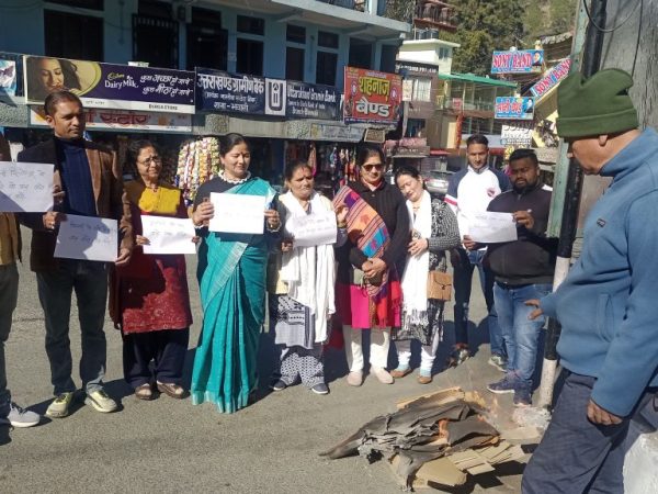 भवाली में बिजली दर बढ़ने पर गरजे कांग्रेसी, फूंका सरकार का पुतला