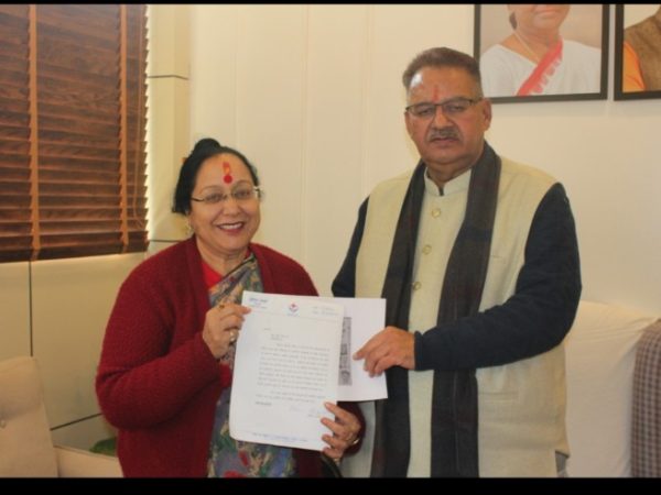विधायक सरिता आर्या ने नुकसान के मुआवजे के लिए कृषि मंत्री को सौपा ज्ञापन