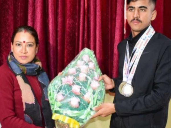 खेल मंत्री ने 37वी जूनियर राष्ट्रीय ऐथलेटिक्स प्रतियोगिता विजेता सचिन को किया सम्मानित