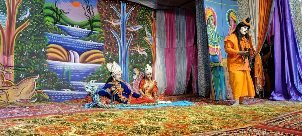 जिसमें प्रथम दृश्य नटी सूत्रधार के साथ रामलीला मंचन का प्रारंभ किया गया, वही इस दौरान कपिल तिवारी द्वारा नारद मोह का सुन्दर अभिनय किया गया,