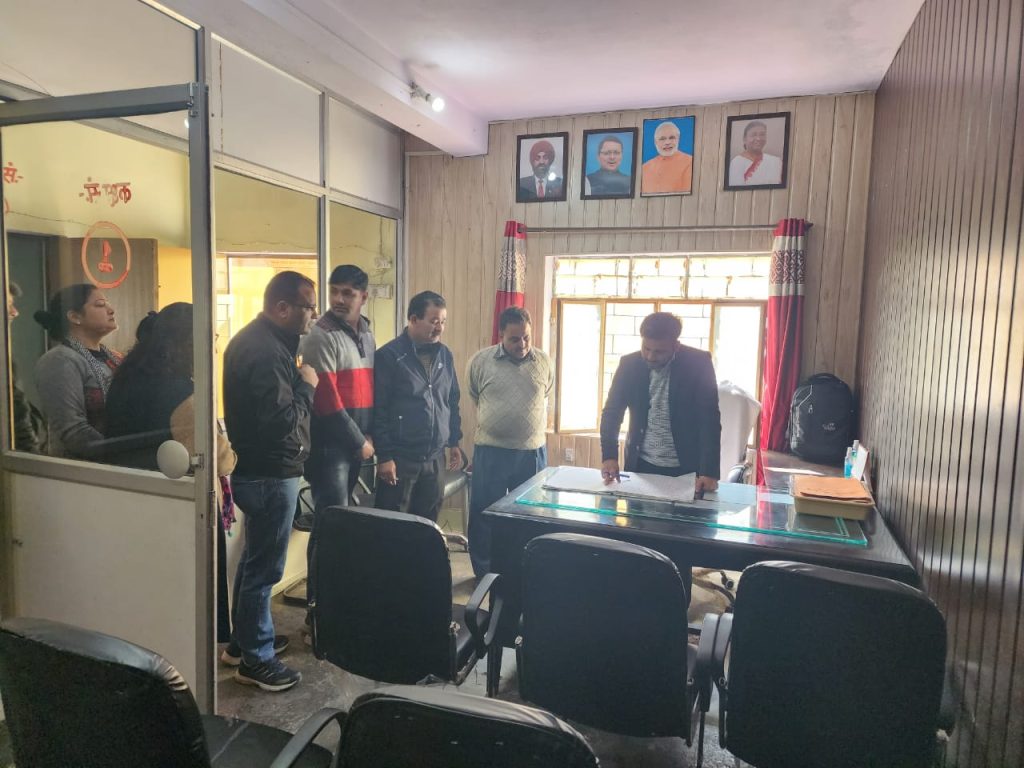 भवाली। नगर के नगर पॉलिका लोकनिर्माण विभाग में एसडीएम राहुल साह औचक निरीक्षण करने पहुँचे। सुबह 10 बजे विभागों के उपस्थिति रजिस्टर चेक किये गए। एसडीएम के अचानक पहुचने से आनन फानन में कर्मचारी सक्ते में आ गए। विभागों में दो लोग अनुपस्थित पाए गए। जिस पर उन्होंने दोनो का स्पष्टीकरण मांगा है। एसडीएम राहुल साह ने बताया कि नगर पॉलिका लोकनिर्माण विभाग में कर्मचारी समय पहुँच रहे या नही देखा गया। दो लोग अनुपस्थित पाए गए। उनका स्पष्टीकरण मांगा गया है।