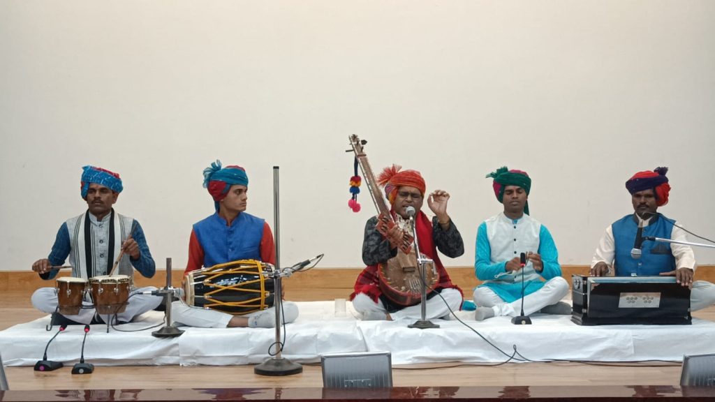 प्रधानाचार्य वी के ठाकुर ने कालूराम मुख्य अतिथियों को शाल ओढ़ाकर सम्मानित किया। अतिथियों ने कहा कि लोक संगीत सामान्य बहुसंख्यक जनमानस का प्रतिनिधित्व करता है। इसलिए लोक गीत-संगीत की भाषा भी लोक की ही होती है। वाणी के डिक्टेटर कबीर की भक्ति लोकभाषा के कारण ही सहज बनती है। मुख्य अतिथि कालूराम बामनिया ने कहा सिर्फ़ भारतीय लोक संस्कृति को ही नही, बल्कि निर्गुण कवियों की प्रस्तुति से वे भारत के सनातन दर्शन एवं चिंतन को भी जीवांत किए हुए हैं। जिससे आज के युवा वर्ग को जुड़ने की आवश्यकता है। विद्यालय के रतनदीप सभागार में उन्होंने सर्वप्रथम कबीर बानी से गुरु वंदना ‘गुरु गम का सागर’ गायी। इसके बाद उन्होंने ‘इनका भेद बता मेरे अवधू’, ‘मत कर माया को अहंकार’, ‘मन लागो मेरो यार फ़कीरी में’, ‘जरा धीरे-धीरे गाड़ी हाँको’ भजन – प्रस्तुतियाँ देकर दर्शकदीर्घा को मंत्रमुग्ध कर दिया। इस कार्यक्रम में उनके सभी साथी कलाकारों का भी महत्त्वपूर्ण योगदान रहा। इस दौरान उत्तम सिंह बामनिया, राम प्रसाद परमार, अंकित मालवी, सज्जन सिंह परमार, प्रधानाचार्य ग्रुप कैप्टन वी. के ठाकुर, उप प्रधानाचार्य कमांडर एस. नागराजन, दीपा पंत रहे।