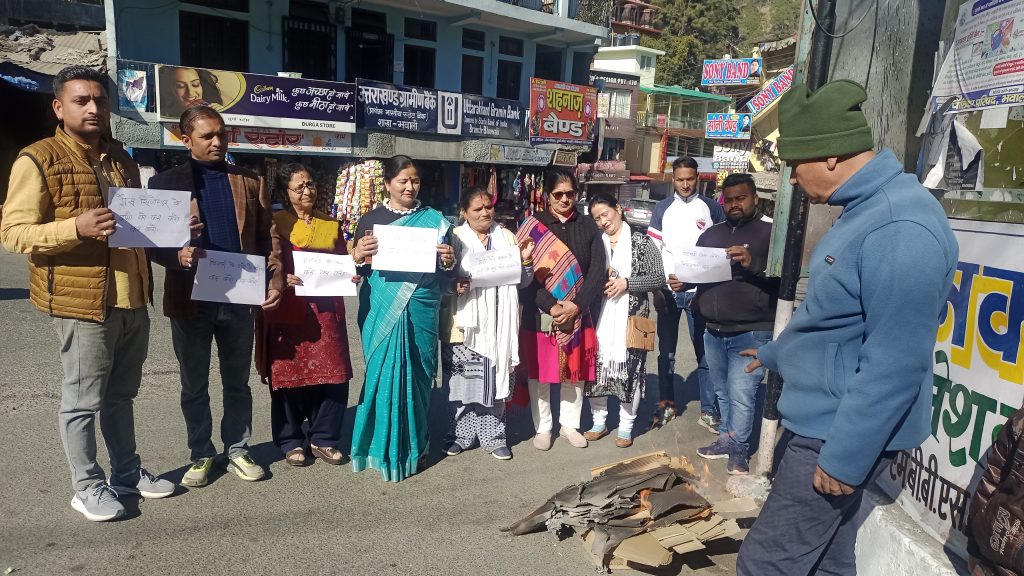 भवाली। शुक्रवार को कांग्रेस पीसीसी सदस्य खष्टी बिष्ट के नेतृत्व में कार्यकर्ताओं ने बिजली दरों में बढ़ोतरी को लेकर मुख्य चौराहे पर पुतला दहन किया गया। भजापा सरकार विरोधी नारे लगाए। मोदी तेरे साशन में लूट गए हम तो राशन में, बिजली के दाम, राशन के दाम कम करो नारे लगाकर भाजपा सरकार को कोषा। पीसीसी सदस्य खष्टी बिष्ट ने कहा कि प्रदेश कांग्रेस के निर्देशन में सरकार का पुतला दहन किया गया है। सरकार बेरोजगारी महंगाई को हर दिन बढ़ा रही है। जिससे गरीब जनता पर बोझ बढ़ रहा है। सरकार सत्ता के नशे में अंधी हो गई है। कांग्रेस ने बिजली दरें बढ़ाने के प्रस्ताव का विरोध किया है। कहा जना सरकार की उपेक्षापूर्ण नीतियों से पहले ही त्रस्त है।