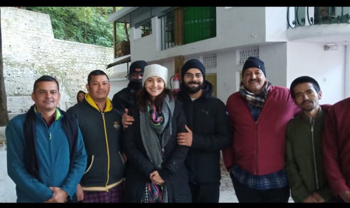 नगर के सैनिक स्कूल घोड़ाखाल में विराट कोहली पत्नी अनुष्का शर्मा के साथ बुधवार को हेलिकॉप्टर से पहुँचे थे। विराट के आने से स्कूली बच्चे उनके फैंस विराट कोहली के साथ फोटो खिंचाने के लिए इंतजार में रहे। लेकिन उन्होंने सभी से दूरी बनाए रखी। स्थानीय लोग विराट के दीदार के लिए खड़े हैं। सूत्रों के मुताबिक गुरुवार सुबह सुबह कैची धाम नीब करोली महाराज की आरती में शामिल होकर विराट पीछे के गेट से चले गए। आस पास के लोगो को विराट के मंदिर पहुँचने की भनक लगी। लेकिन यहां भी उन्होंने अपने फैंस से दूरी बनाकर रखी।