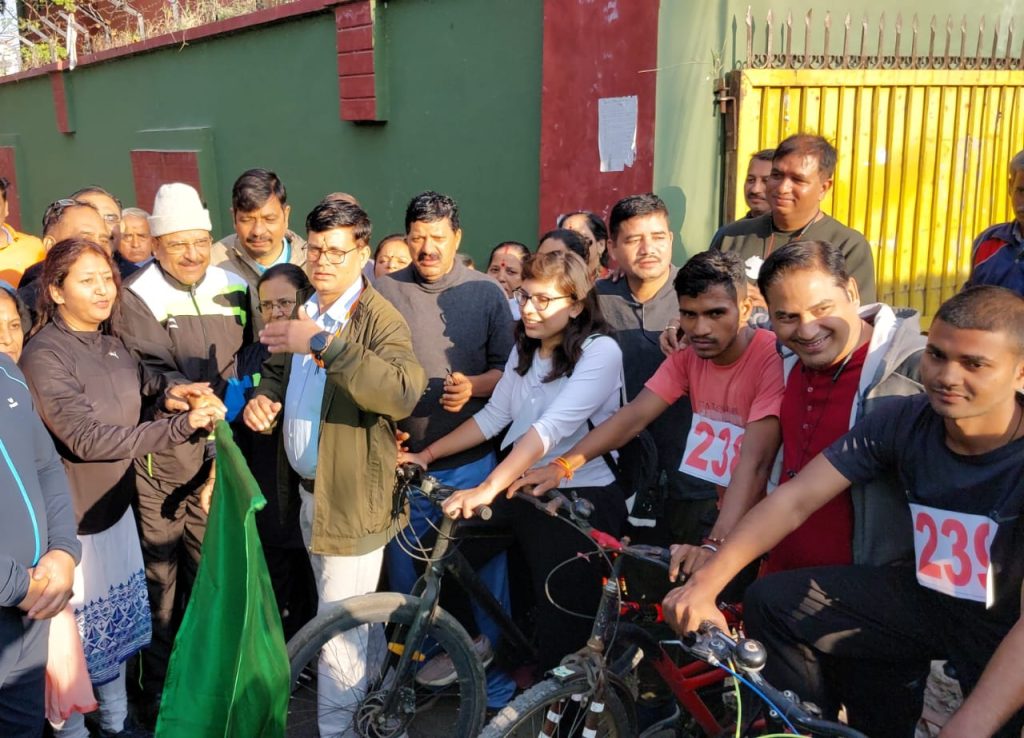 मिनी स्टेडियम हल्द्वानी में मुख्य अतिथि केन्द्रीय पर्यटन एवं रक्षा राज्य मंत्री श्री अजय भट्ट ने राष्ट्रीय एकता दिवस के उपलक्ष्य में साईकिल रैली एवं रन फॉर यूनिटी (राष्ट्रीय एकता दिवस) में प्रतिभागी खिलाडियों को हरी झडी दिखा कर कार्यक्रम का शुभारम्भ किया।