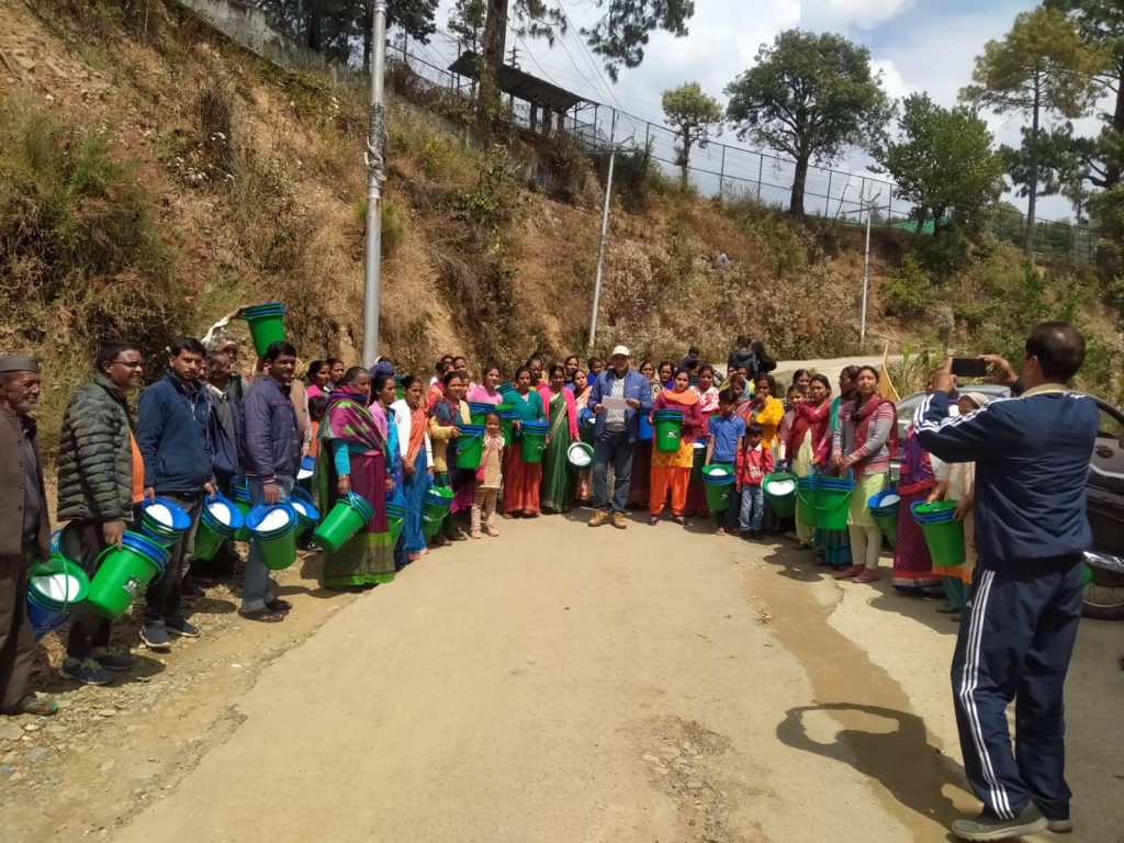 भवाली। मेहरागांव ग्रामसभा में ग्राम प्रधान गणेश जोशी की अध्यक्षता में सफाई अभियान चलाया गया। साथ ही स्कूली बच्चों व ग्रामीणों को कूड़ेदान वितरित किये गए। ग्राम प्रधान गणेश जोशी ने बताया कि स्वच्छता को लेकर लगातार क्षेत्र में जागरूकता अभियान चलाया जा रहा है। शनिवार को ग्रामीणों को कूड़ेदान वितरण किया गया। आगे भी सफाई अभियान चलाकर लोगो को जागरूक किया जाएगा।
