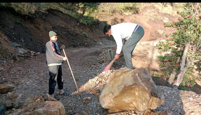 -ग्रामीणों ने पत्थर हटाकर अस्थाई रूप से खोला रास्ता